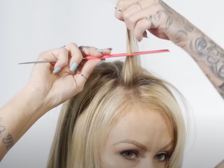 Take the topper and place it over the crown area where you want to add volume or coverage. The front edge of the topper should align with your natural hairline or slightly behind it, depending on your preference.